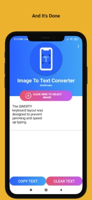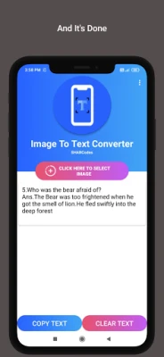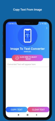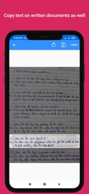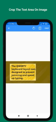 1. Select the image from gallery or take a photo from the camera 2. Drag the corners of crop view to select the text 3. Now you may copy to clipboard or share the extracted text.