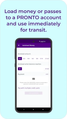 With PRONTO, you can pay-as-you-go* by adding money to your PRONTO account with a credit or debit card. Every time you scan your app, the appropriate one-way fare is deducted from your balance. Look for validators at Trolley, SPRINTER and COASTER stations, and onboard buses.