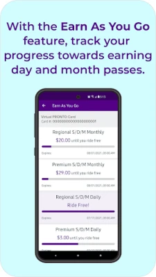 You can track your progress toward a Day or Month Pass in the PRONTO app.